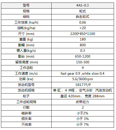 小型小麥?zhǔn)崭顧C(jī),配套動(dòng)力為7.6馬力,割幅為800mm.
